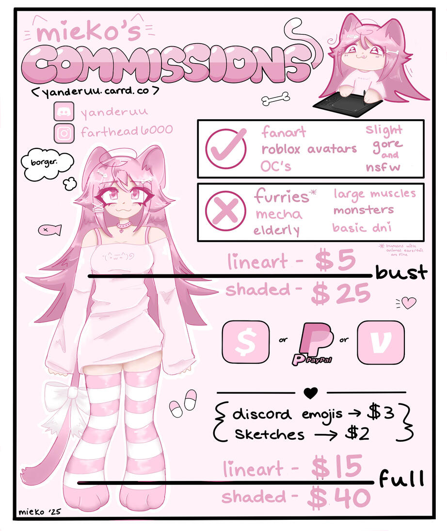 | human/humanoid, fanart, roblox avatars, OC's, couples, slight gore and nsfw | basic dni (pedo, incest, etc), mecha, furries, large muscles, elderly, monsters |